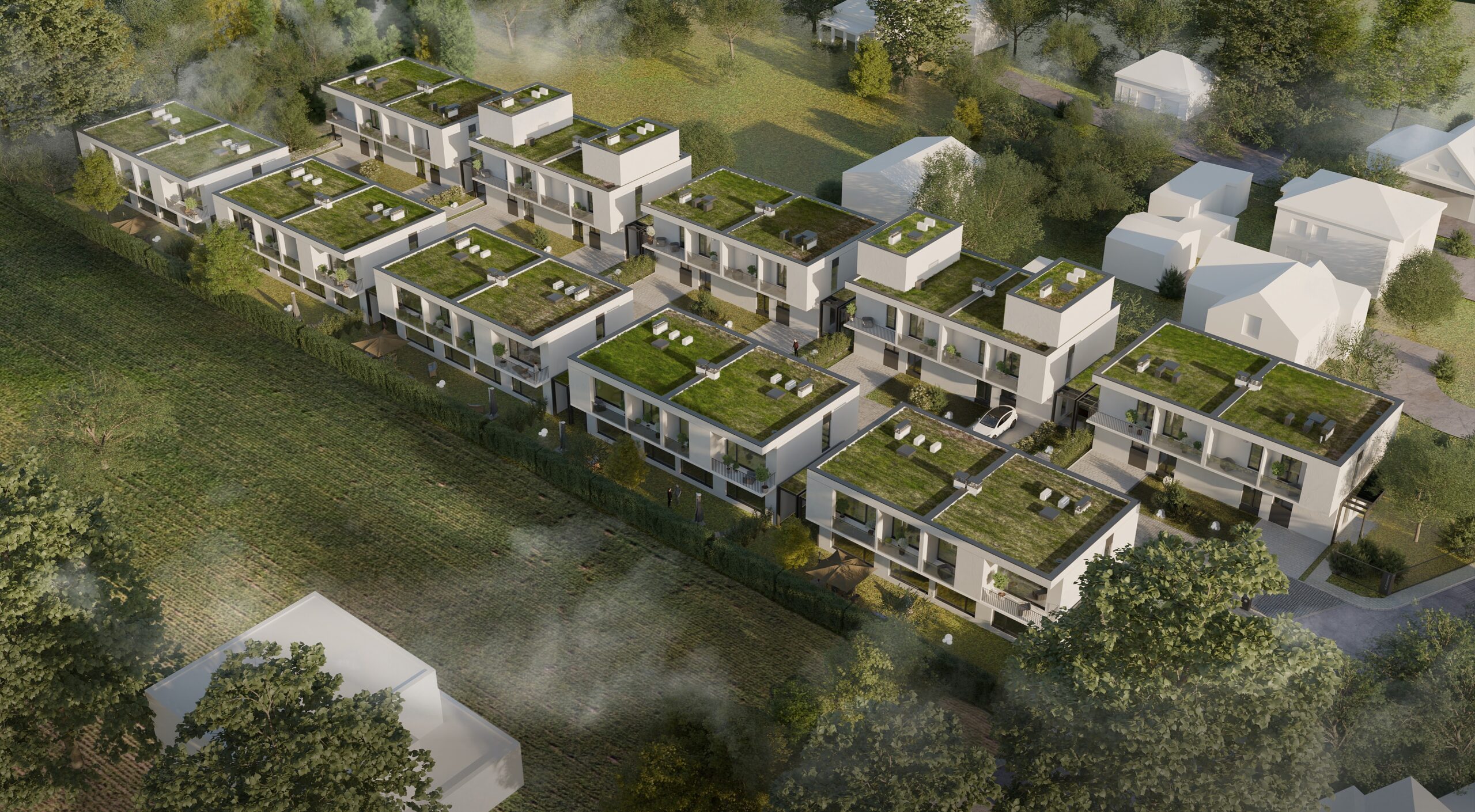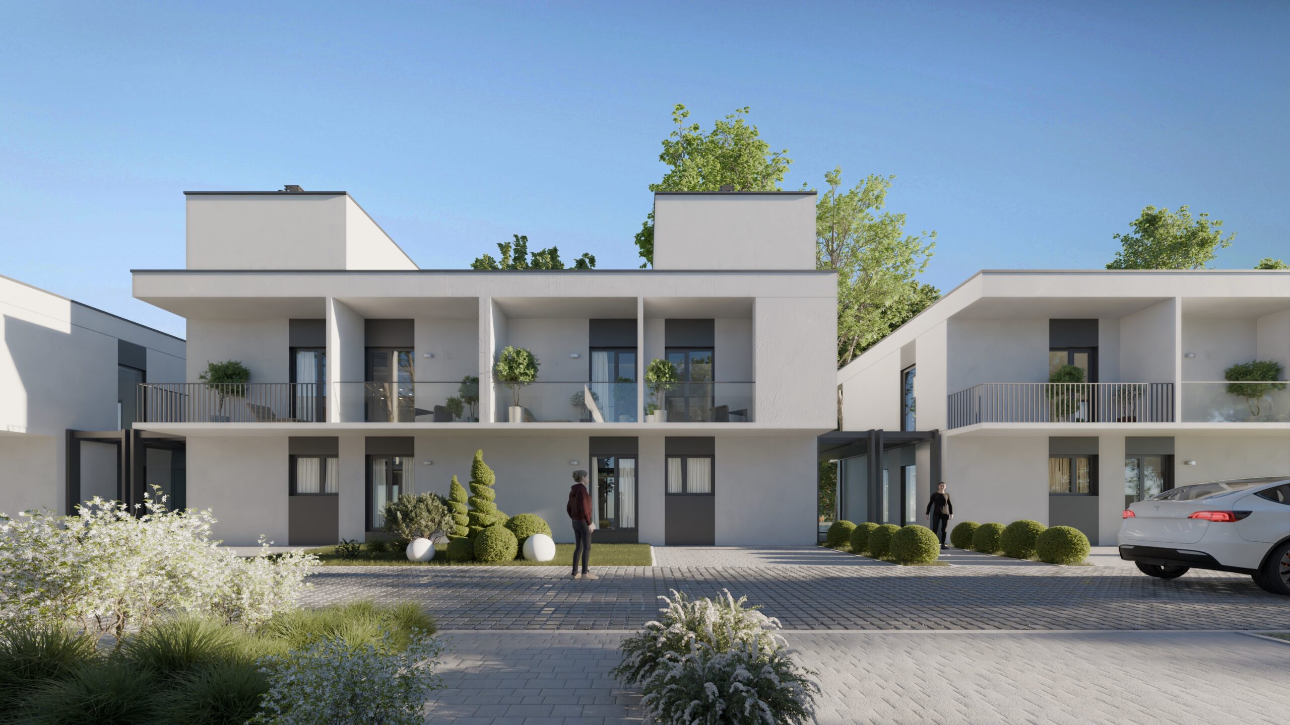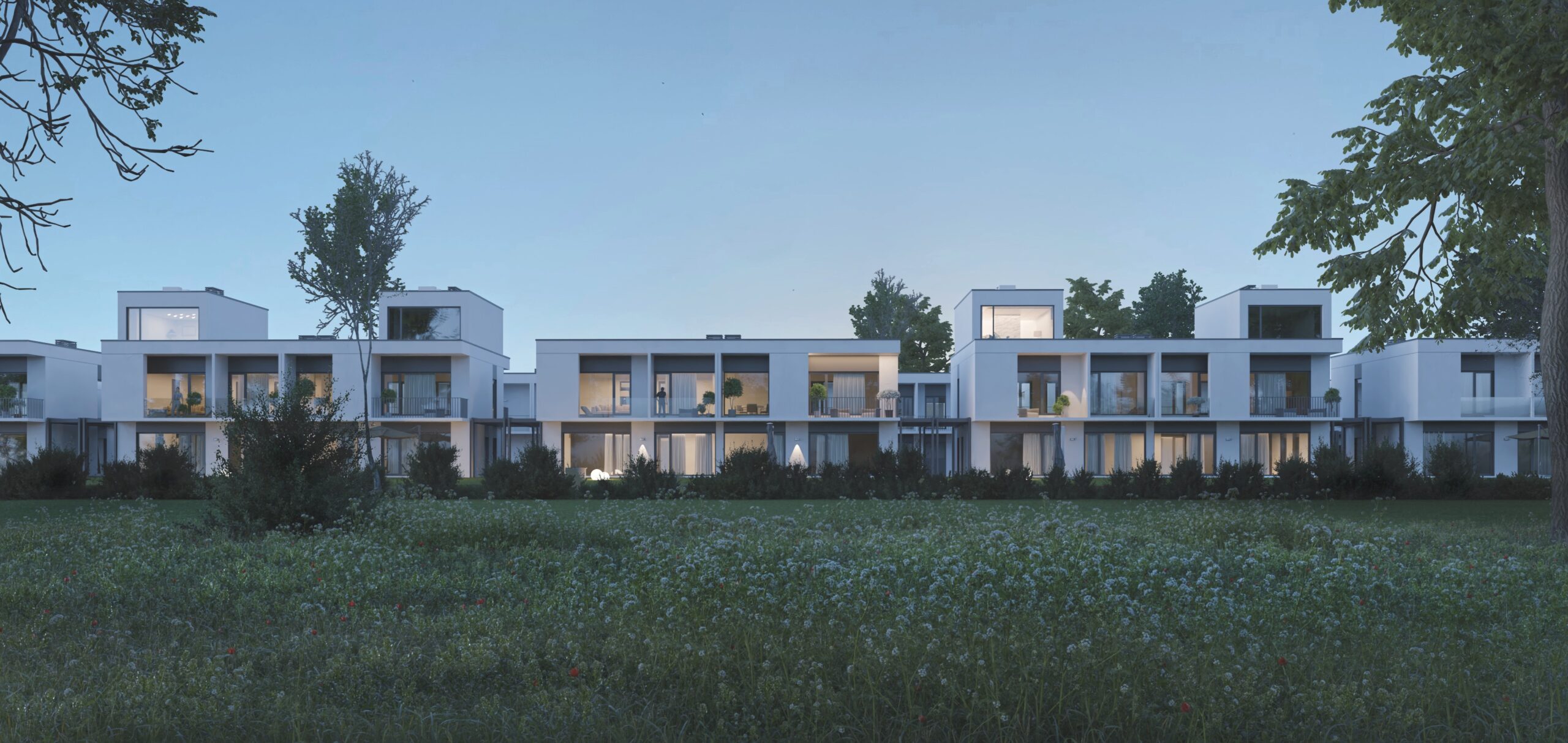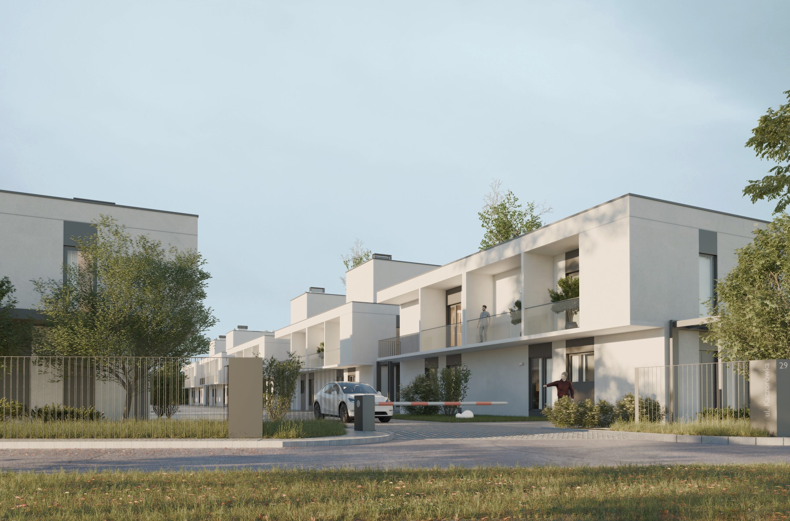 Kameralne osiedle nowoczesnych apartamenty w zabudowie bliźniaczej. Minimalistyczna architektura, wysoki standard wykończenia i rozwiązania przyjazne środowisku.